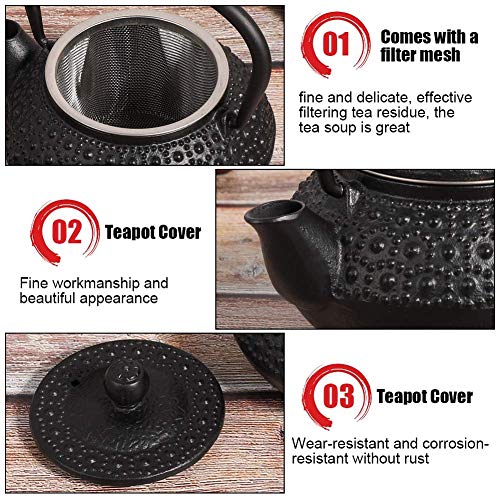 0.3L Cast Iron Tea Pot Iron Tea Kettle with Strainer Rindrop Type Kettle Boiler Set for Home Ornaments Gift Decoration