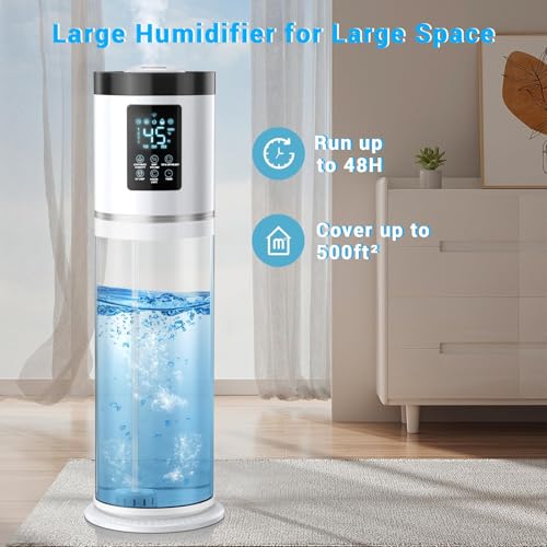 SLEEP MODE & TOUCHSCREEN – The large humidifier features a quiet sleep mode of 35dB, making it perfect to use at night without disturbing your sleep. There is an easy-to-use touch screen on top of the humidifier and a remote control making it easy to use for people of all ages. Its top filling hole is wide enough that you don’t have to rub around any awkward corners. The bedroom humidifier has a simple cleaning process that makes it easy to keep it running efficiently.