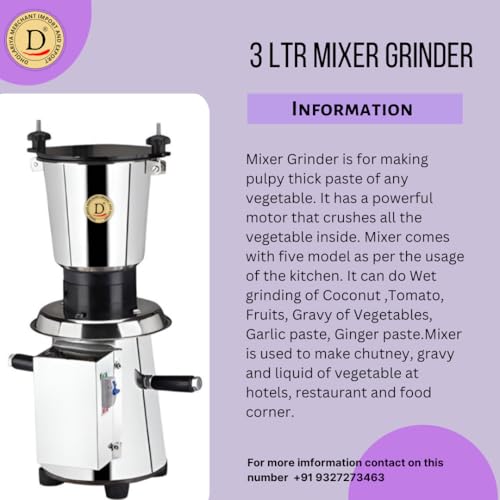 Compact and Portable: Featuring a sleek and compact design, this mixer grinder can easily be moved and stored, making it convenient for use in any kitchen setup.