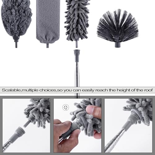 5PCS Microfiber Duster with Extension Pole, Qolixs Feather Duster Kit for House Cleaning, Bendable Cobweb Duster with Extension Pole 30-100 inches for Cleaning from Floor to Ceilings