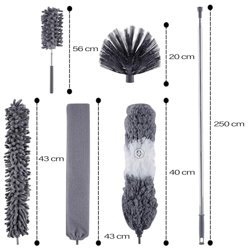 ✭MAKE YOUR HOUSE DUST FREE– Our microfiber duster kit contains 3 different kind of dusters, 1 extension pole can reach to 100 inches with the duster, 1 extra mini handhold Chenille duster. Total 5 piece, with this feather duster kit, you can clean your house from floor to ceiling. No more bothering by the dust.