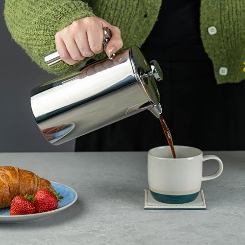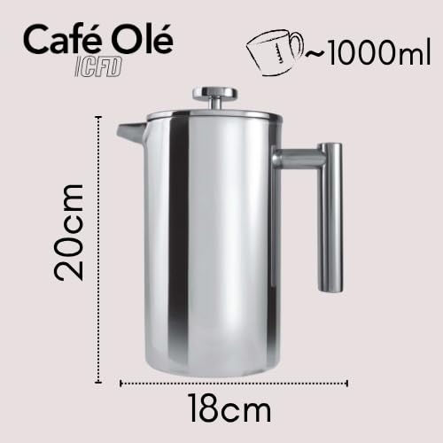 8 Cup , Mirror : Café Ole 8 Cup Double Walled Straight Sided Cafetiere Coffee Maker, Mirror, 1000 ml/1 Litre