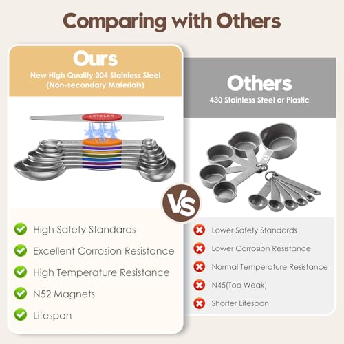 Effortless Organization with Strong Magnets: Each spoon features powerful N52 magnets, allowing them to nest securely together for easy storage. Say goodbye to fumbling with rings or misplaced spoons – simply stack them or attach them to any metal surface for quick access.