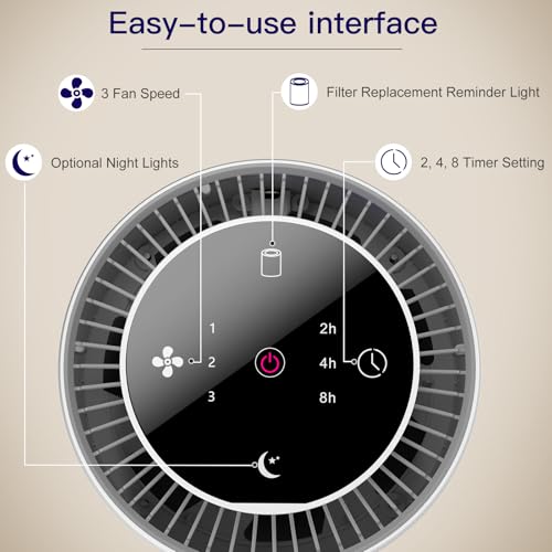 đ đăExperience a restful and totally uninterrupted sleepă The noise level does not exceed 23dB in standby mode. The LED panel buttons can be set for maximum brightness, 50% brightness or completely off. You can choose to turn on or off the soft glow inside the Hepa air purifier to create a comfortable atmosphere.