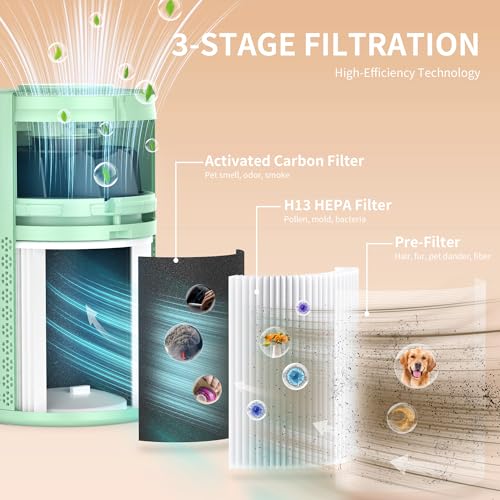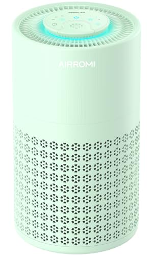 AIRROMI Air Purifier for Bedroom with HEPA 3-in-1 Filter, Pet Air Purifier for Home Cat Pee Smell, Covers Upto 990 Ft², Quiet 360°intake Air Cleaner for pet hair,allergies,Dust,Smoke A2001 Green