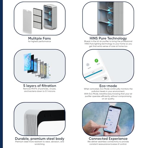 Blueair air purifier for bedroom living room home, Particle with Carbon Filter. Blueair 9i air purifier Cleans 1850 Sqft in 30 mins