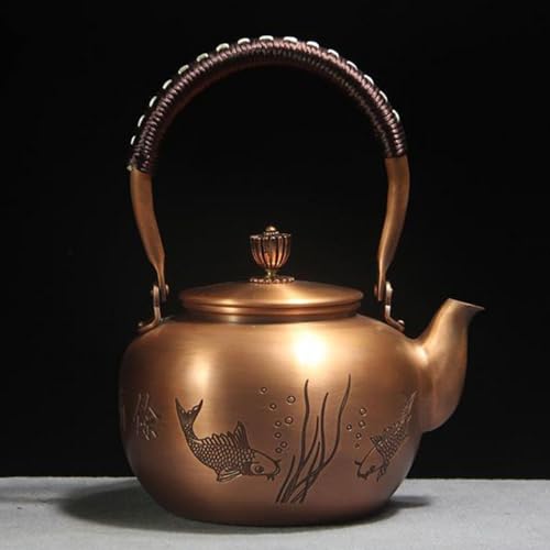 BNF®Copper Teapot Wrapped Handle Retro Water Kettle for Household Office Camping Fish Pattern|Home & Garden | Small Kitchen Appliances |1 Copper Tea Kettle