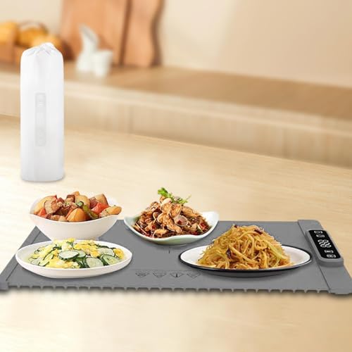 Large Capacity‘: Warming pad is large in size,62cmx38cmx0.8cm/24.41inchx14.96inchx0.31inch, and can heat about 4-6 plates at a time, suitable for family meals.