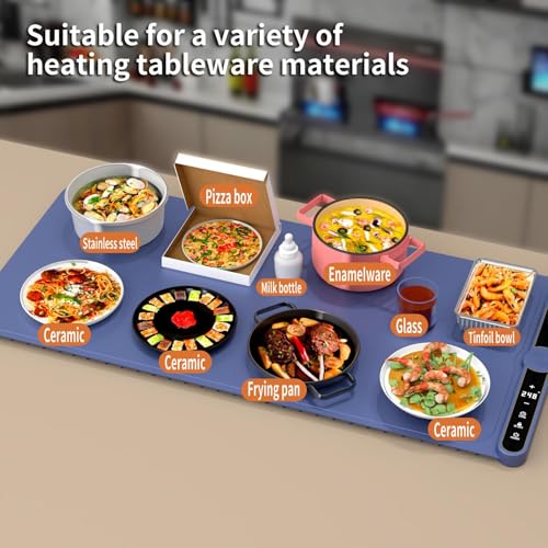 Large Capacity‘: Silicone Heating Mat measures 80cmx38cm and can heat about 6-8 plates at a time, suitable for family gatherings