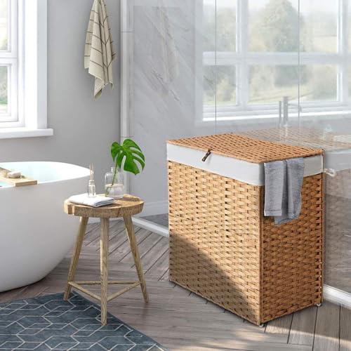 Freestanding Structure‘: Tall Laundry Basket With 2 Section Organized And Decreases Clutter Around Your House With A Decorative, Attractive Design. Great For Dirty Clothes Hamper Toy Storage Bin, Gift Basket, Nursery Hamper & Closet Organizer