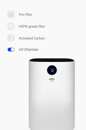 Multi-stage filtration plus UV: Pre-filter, HEPA H13, Activated Carbon, Photocatalyst, UV lamp for comprehensive in-unit hygiene.