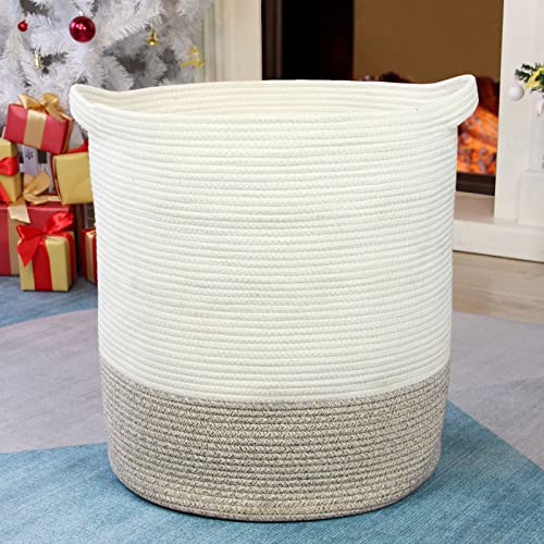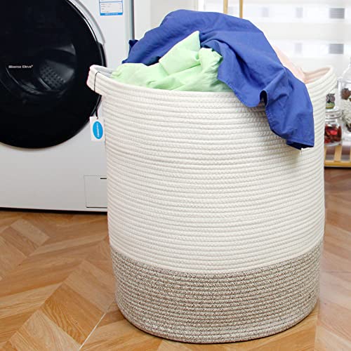 Casaphoria Extra Large Woven Cotton Rope Storage Basket for Organizing,Tall Round Woven Baskets for Clothes Blanket Pillows Towels,Big Capacity Laundry Hamper for Bathroom LivingRoom Bedroom
