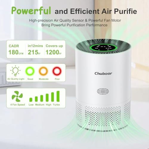 Chuboor Air Purifiers for Home Large Rooms, H13 True HEPA Air Purifiers for Bedroom Dorm Room Pets or Smoke, Dust, Pollen, Odors, Auto Mode, Sleep Mode, PJ01, White