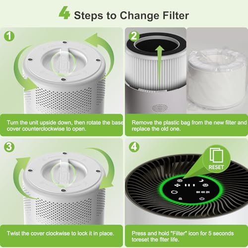 Purify The Air More Easily: In automatic mode, the air purifier can adjust the wind speed according to the surrounding air quality. In addition, you can switch between 3 different speeds and set a 2/4/8 hour timer mode for it. Perfect for bedroom, living room, apartment, office, desk, desktop, kitchen.