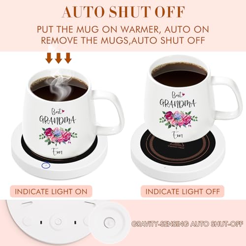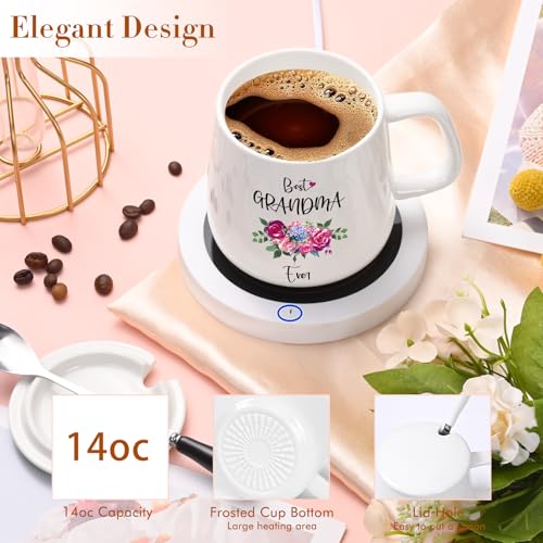 Coffee Mug Warmer, Best Grandma Ever Mug, Coffee Cup Warmer for Desk, Gifts for Grandma, White Heated Coffee Warmer for Nana Home Office Christmas Birthday Gifts