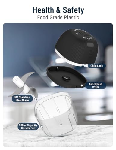 🧼 Easy to Use and Clean: No complicated steps—simply add ingredients to the mini food processor, close the lid, and press the power button for a few seconds to chop. One click is all it takes to start a healthier, more convenient lifestyle!