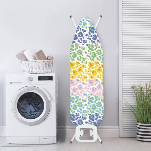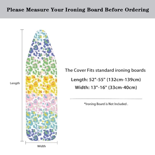 Darisoco Colorful Leopard Ironing Board Cover and Pad Standard Ironing Board Cover with Elastic Edge and Hook and Loop Fasteners Heat-Reflective Fabric