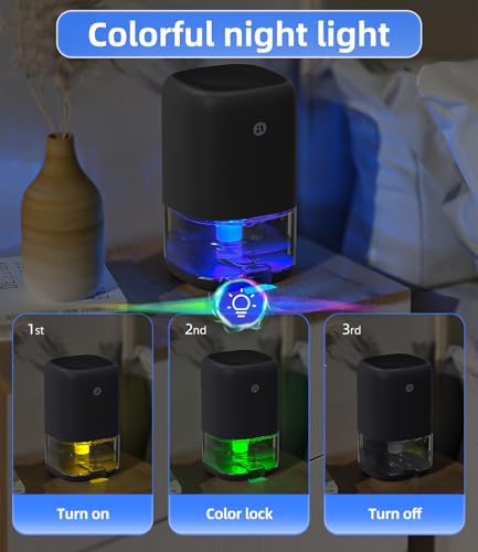 Quiet Dehumidifiers with 7 Color Light: Simply press the light button and you can see 7-color romantic atmosphere lights, and the ultra-quiet operation(28 dB), perfect for office or sleeping environments.