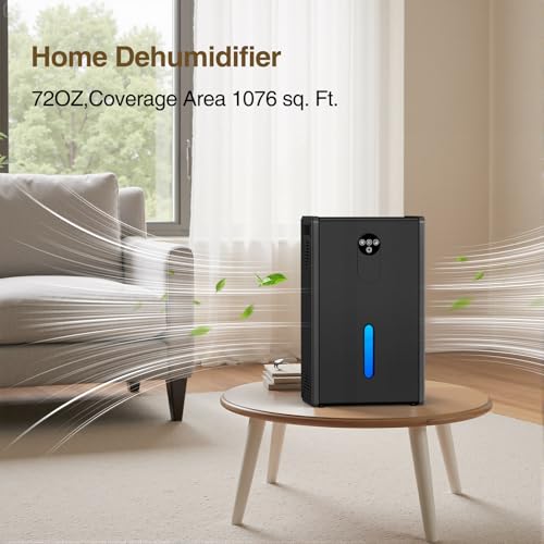 Dehumidifier, 72 OZ Water Tank Dehumidifiers for Home, 1076 sq. ft. Dehumidifier for Basement Bathroom Bedroom with Auto Shut Off, 7 Colors LED Light, Quiet Dehumidifiers with Sleep Mode