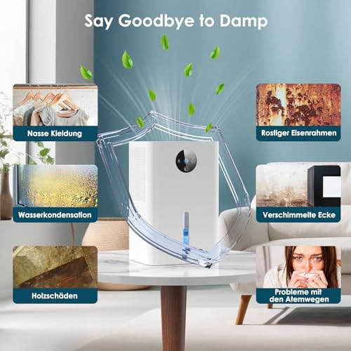 【User-Friendly Dehumidifier】: According to research, if the moisture in the air above 50% can breed uncomfortable or other health problems, the mini dehumidifier can help you. Dehumidifier with a compact size of 6.38X5.12X9.84 inches and a built-in handle on the back, designed for every corner you need. Where you need it, where it is. Perfect for high humidity spaces, dehumidifier for basement, bathroom, bedroom, closet, planting tent, RV. Say goodbye to the humid environment.