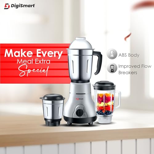 ✅SHOCK-PROOF ABS BODY: To Ensure The Greatest Safety When in Operation, The DigiSmart Mixer Grinder Features Shock-Proof ABS Body. This Helps to Perform Top-Quality Grinding With Least Risk of Injuries Triggered by Overload or Shock. The Whole Machinery of This DigiSmart Kitchen mate Mixer Grinder Is Totally Shock-Proof and Safe.