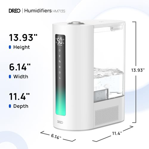 Dreo Smart Humidifier for Plants,Warm and Cool Mist for Bedroom, 6L Large Capacity Lasts up to 60 Hours,Easy Top Fill, Essential Oil Diffuser for Home Large Room, Works with Google/Alexa, White