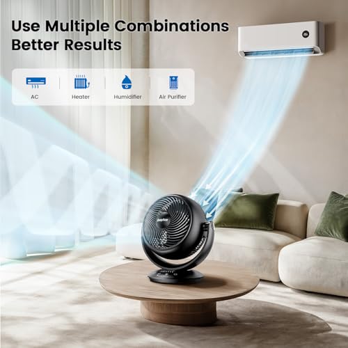 【Whole Room Air Circulation】​​ ✓ CIRCULATION FAN​DESIGN – 7-inch blades deliver ​339CFM airflow​ (max 6.3m/s) to cool spaces. Achieves full-room circulation in a short time without any blind spots in airflow coverage.