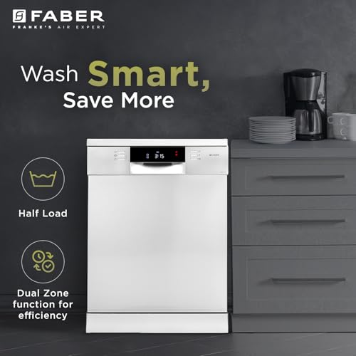 Faber 14 Place Settings Free Standing Dishwasher|8 Wash Programs | LED Display | Adjustable Racks | 3D Wash for Tough Stains | 2Yr Comprehensive Warranty & 10Yr On Cavity | FFSD 8PR 14S, Silver