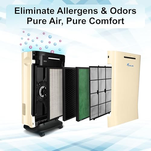 Forus Air Purifier for Home & Office, H13 HEPA 3-in-1 filter, Removes 99.99% Pollutants, Allergens, Pet Dander, Smoke, Dust, virus & Pollens, Covers Up to 500 Sqft Area | PM 2.5 | 2-Year Warranty (GR)