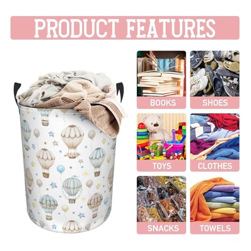 Gbuzozie Watercolor Hot Air Balloon Round Laundry Hamper Storage Basket Toys Clothes Organizer Bin For Home Bathroom Bedroom Dorm Nursery, 62l
