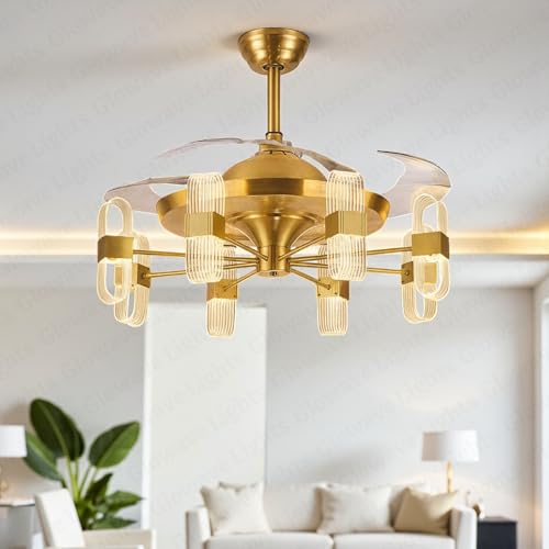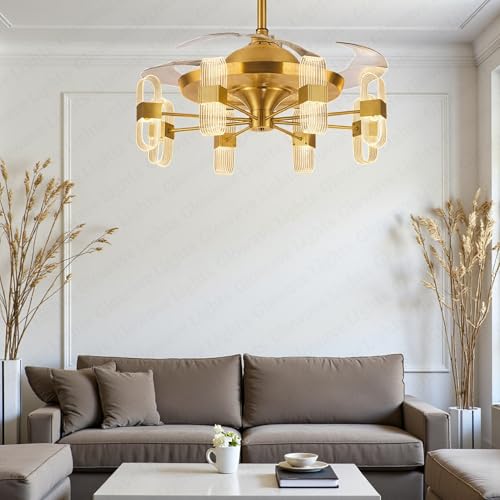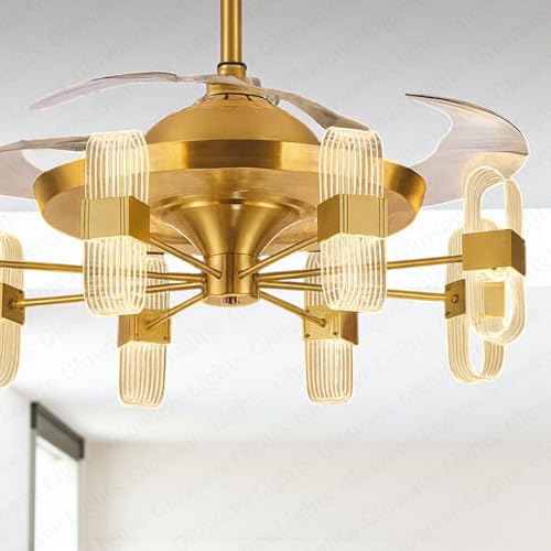 Glowave® Golden 42″ 6 Light Transparent Acrylic Fan with 4 Invisible Retractable ABS Fan Blades Ceiling Fan Light with Remote Control – Tricolour |White, Warm White, Natural White| (7723)