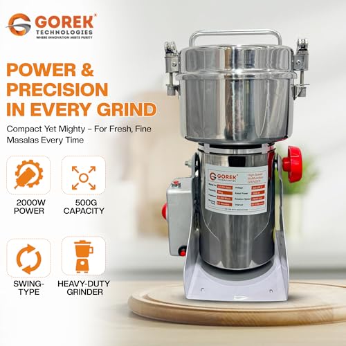 Gorek Technologies GT-PG-1000S 2800W Masala/Spices Grinder Machine with Capacity 1000g Swing Type Machine