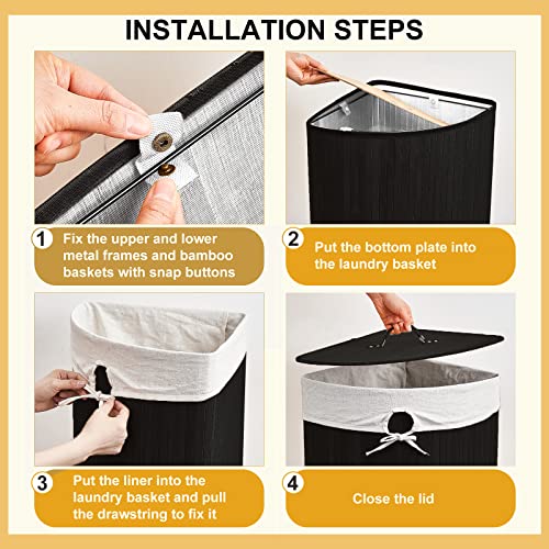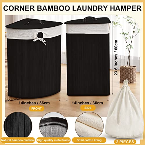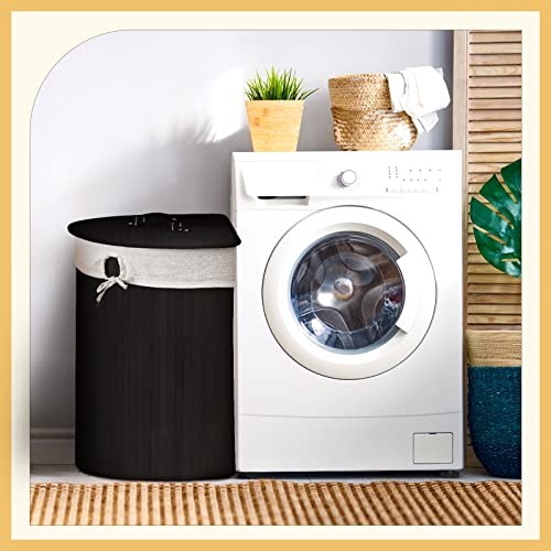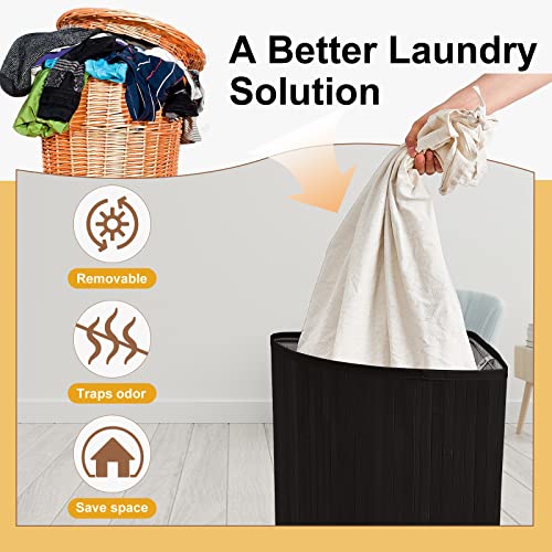 Gueevin Corner Bamboo Laundry Hamper with Lid and Removable Liner Corner Bamboo Laundry Basket with Handle Washing Clothes Basket Storage Bin for Bedroom Bathroom(Black)