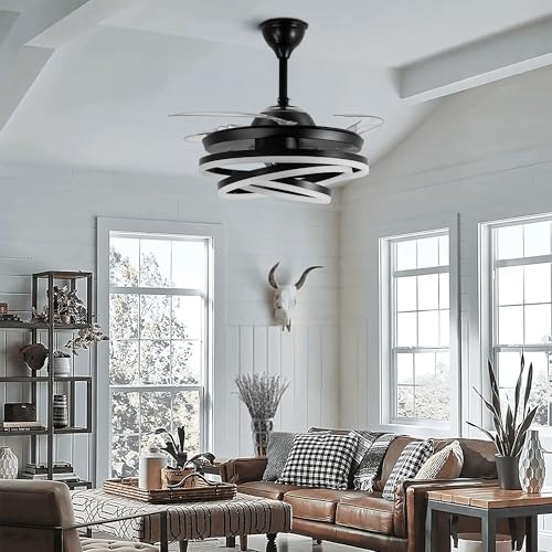 ✅ 2-in-1 Modern Chandelier Fan Design – Elevate your interiors with this sleek black chandelier ceiling fan featuring a contemporary 3-ring LED design and retractable blades. When the fan is off, the blades discreetly tuck away, leaving behind a striking decorative light fixture.