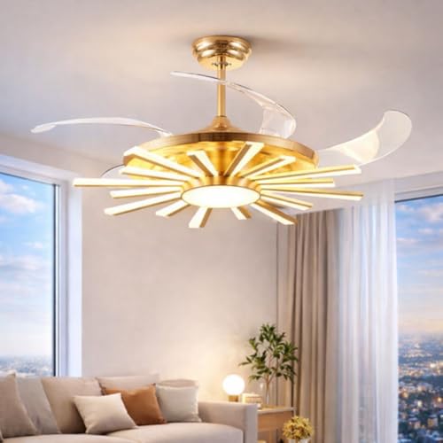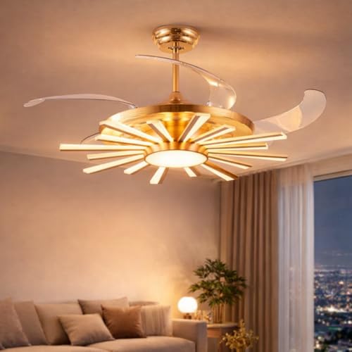 HDC Modern LED Ceiling Fan with Remote Control – Retractable Blade Chandelier Fan Light for Living Room, Bedroom & Home Décor (Sunburst Design, Pack of 1)