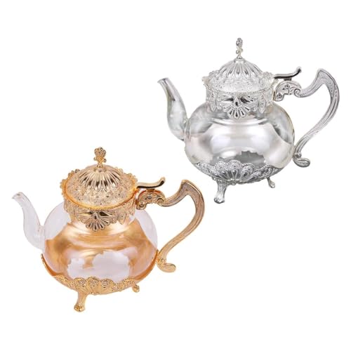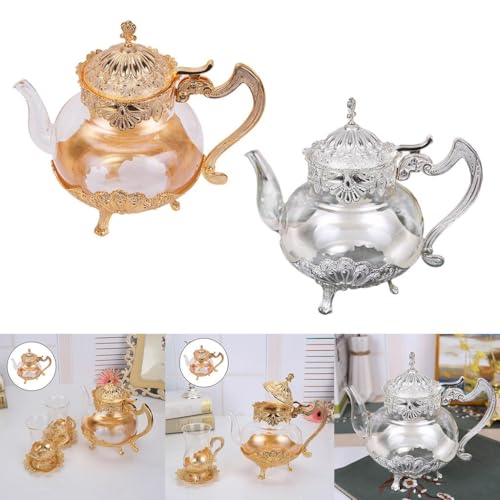 HEAVENGLOW European Style Glass Teapot Kitchen Kettle Glassware for Wife Golden