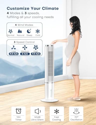 โใ๐ ๐๐จ๐๐๐ฌ & ๐ ๐๐ฉ๐๐๐๐ฌ ๐๐จ๐ซ ๐๐ฎ๐ฌ๐ญ๐จ๐ฆ๐ข๐ณ๐ข๐ง๐ ๐๐จ๐ฎ๐ซ ๐๐ฅ๐ข๐ฆ๐๐ญ๐ใWith 3 wind speeds (low-4.5 m/s, medium-6m/s, and high-7.5m/s) delivering a cooling breeze at up to 7.5 m/s. Choose from 4 modes(Cooling/Normal/Sleep/Nature): Normal for daily use, Sleep for restful nights, and Cooling for maximum cooling effect. Beat the heat effortlessly and enjoy a cool, comfortable living space with the tower fan for home!