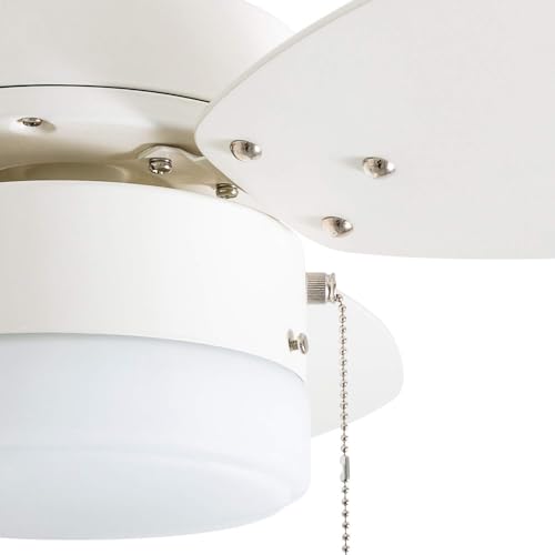 Honeywell Ceiling Fans Ocean Breeze, 30 Inch Modern Indoor LED Ceiling Fan with Light, Pull Chain, Dual Mounting Options, Double Finish Blades, Reversible Motor – Model 50600-01