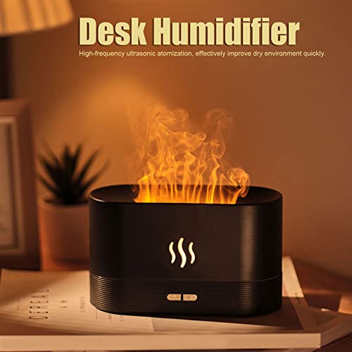 Humidifier, 180ml Fire Simulation Desk Humidifier Auto Off Soft LED Light aromatherapy diffuser Dimmable Silent USB Humidifier for Home Office Car(Black)