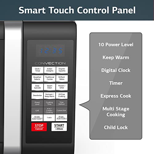 No. of Programes: Multi Stage Cooking, Solo Mode, Convection Mode, Oil Free Cooking, Grill Mode, Paneer Ghee, Fermentation, Keep Warm, Combination Cooking Grill + Microwave, Auto Defrost, Yoghurt