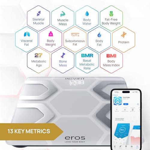INEVIFIT EROS Bluetooth Body Fat Scale Smart BMI Highly Accurate Digital Bathroom Body Composition Analyzer with Wireless Smartphone APP 400 lbs 11.8 x 11.8 inch (White)