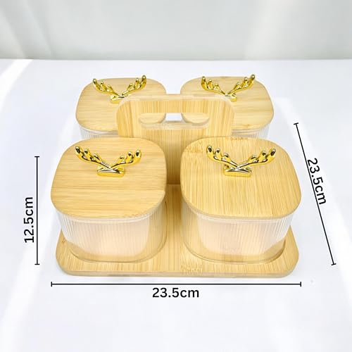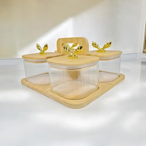 πππ’ ππ₯πππ‘πππ¬: Wooden Tray With Ribbed Glass Bowls and airtight lid Set. Easy to maintain and Environment Friendly .Clean this Product Hand Wash only with a mild Soap and Air Dry for long life of Products.
