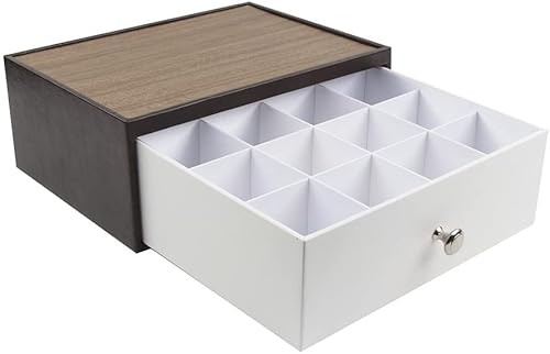 JackCubeDesign JackCubeDesign Leather Tea Box Storage Box Tea Bag Organizer Holder Tea Storage Drawer Holder with 12 Compartments(Brown/White)- :MK353A