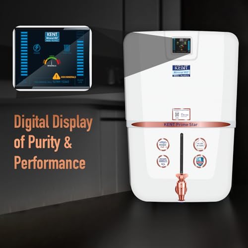 KENT Prime Star RO Water Purifier |.0001 Micron RO Membrane | RO+UV+UF+Alkaline+Copper+TDS Control + UV LED Tank | 9L Tank | 20 LPH Flow | Digital Display | Fit for Borewell,Tanker & Municipal Water