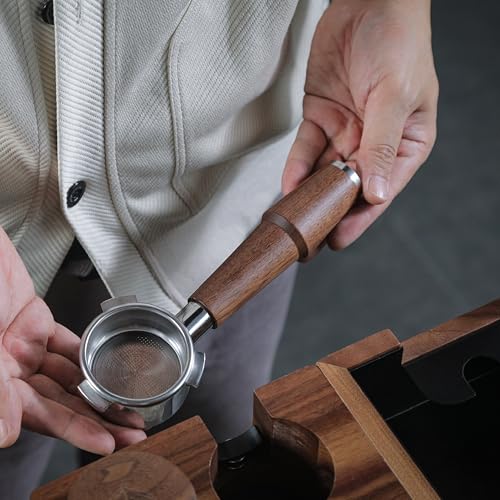Made from solid natural walnut and precision-machined components, this portafilter delivers a professional feel with long-lasting durability. Includes a high-quality 18–21g double shot basket to ensure even flow and rich crema