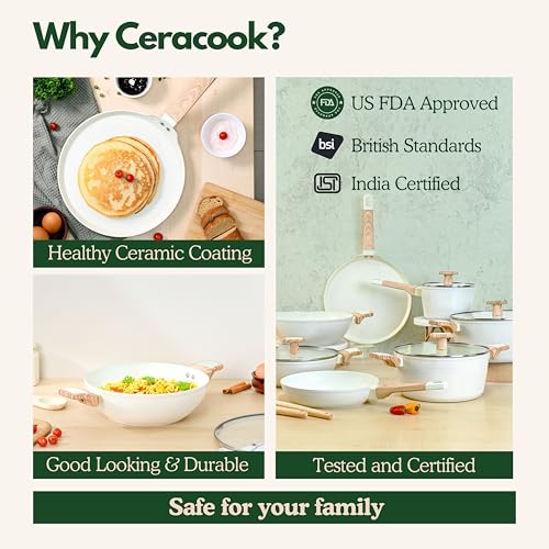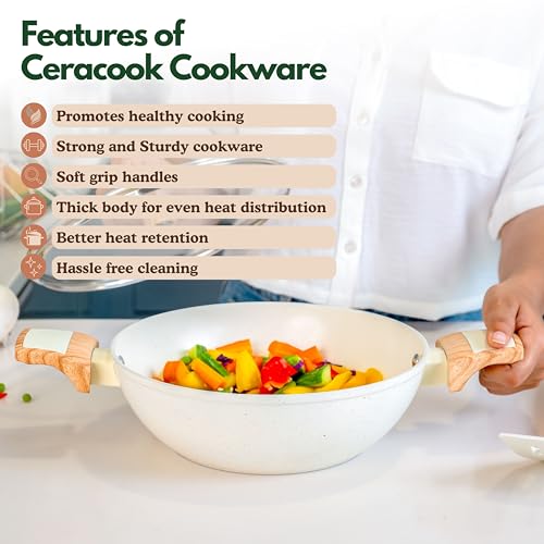SUPERIOR QUALITY AND DESIGN: Our chef-grade Cookware is specially crafted for style, durability, and functionality. It features toxin free ceramic coating and a toughened glass lid. Ergonomic Bakelite Handles provide a soft-touch, cool and heat-proof grip.