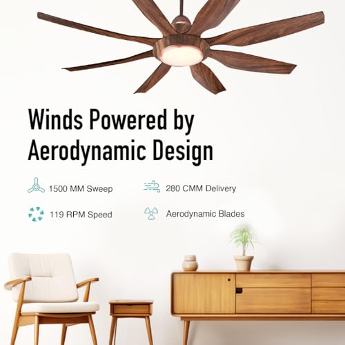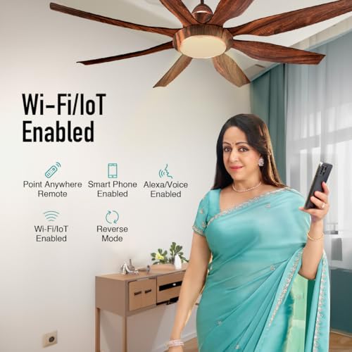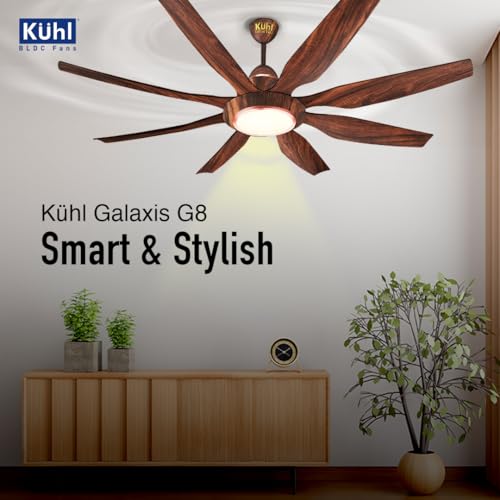 KUHL Galaxis G8 1500 mm Stylish Power Saving BLDC Ceiling Fan with Remote | Down Light | 38W | 5 Star | High Air Flow | Low Noise | IoT – Operate via Mobile & Alexa | Reverse Mode | Teak