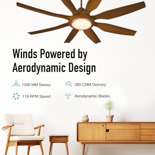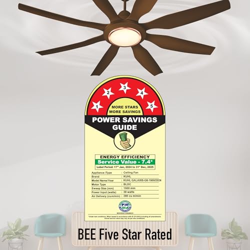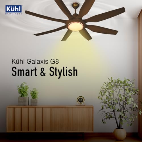 KUHL Galaxis G8 1500 mm Stylish Power Saving BLDC Ceiling Fan with Remote Down Light|38W|BEE 5 Rated & ISI Marked| High Air Flow | Low Noise | IoT – Operate via Mobile & Alexa | Reverse Mode | Brown