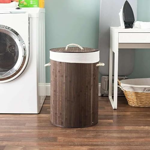 Large Capacity Foldable Bamboo Laundry Hamper – Eco-Friendly & Space-Saving Round Laundry Basket for Bedrooms, Bathrooms