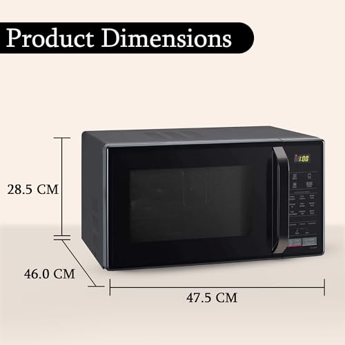 Dimensions of outer body, inner cavity and turntable diameter – 47.5 CM X 28.5 CM X 46 CM (W X H X D) | Inner cavity – Stainless Steel | Turntable Diameter – 9.64 Inches